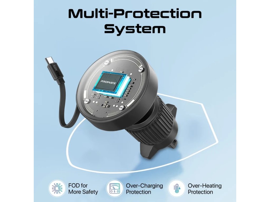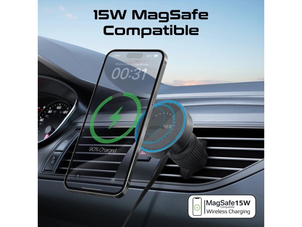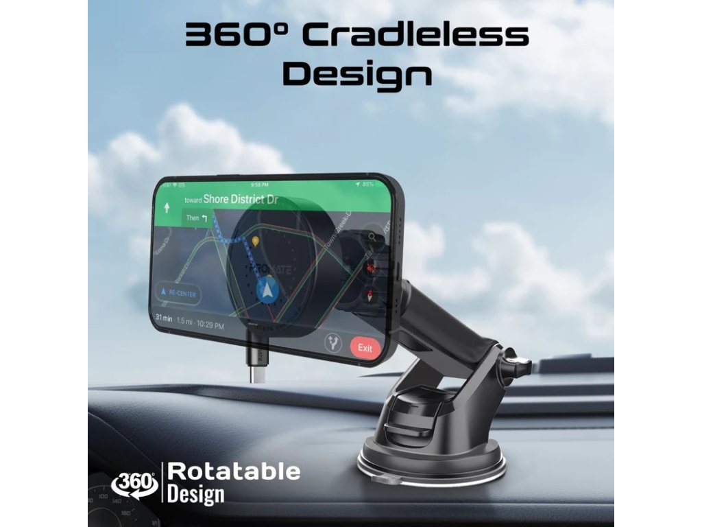 PROMATE Bezdrátová nabíječka do auta kompatibilní s MagSafe se zatahovacím kabelem, 15 W