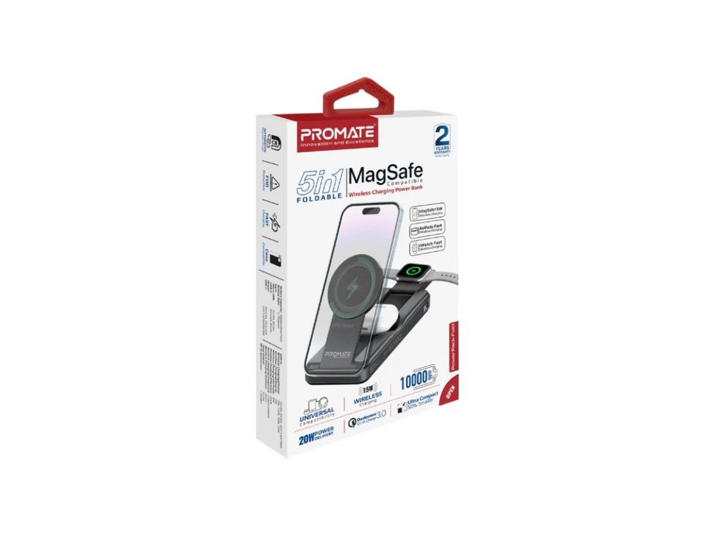 PROMATE PowerPack-Fold Skládací powerbanka s bezdrátovým nabíjením kompatibilní s MagSafe 5v1
