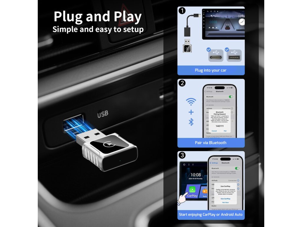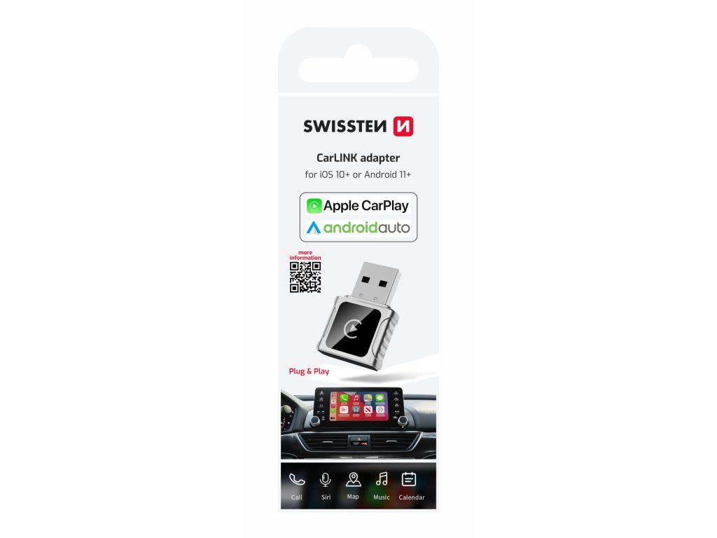 SWISSTEN Adaptér Carlink - Apple Carplay / Android Auto (+adaptér USB-A / USB-C)