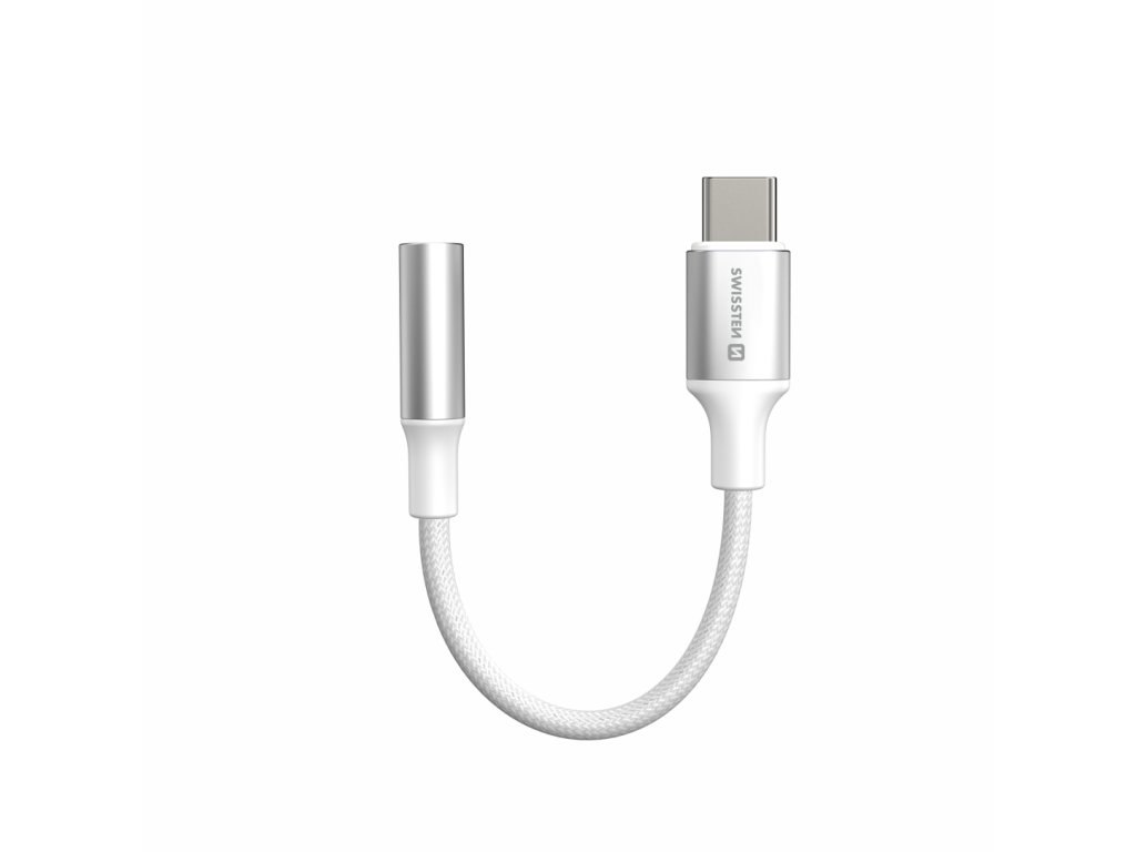 SWISSTEN Audio adaptér USB-C (samec)/3,5 mm jack, 0,15 m, textilní