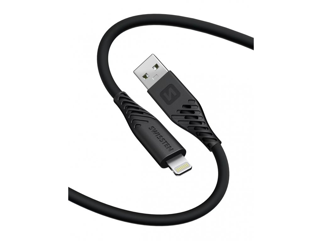 SWISSTEN Datový kabel SOFT SILICONE USB / lightning 1,5 m, 30W, černý