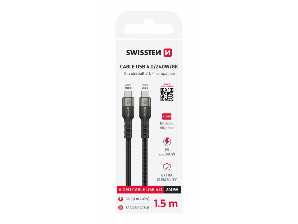 SWISSTEN Datový video kabel USB 4.0, USB-C, 240 W, 8K@60Hz, 40 GB/s, TB3 & TB4, 1,5 m, černý