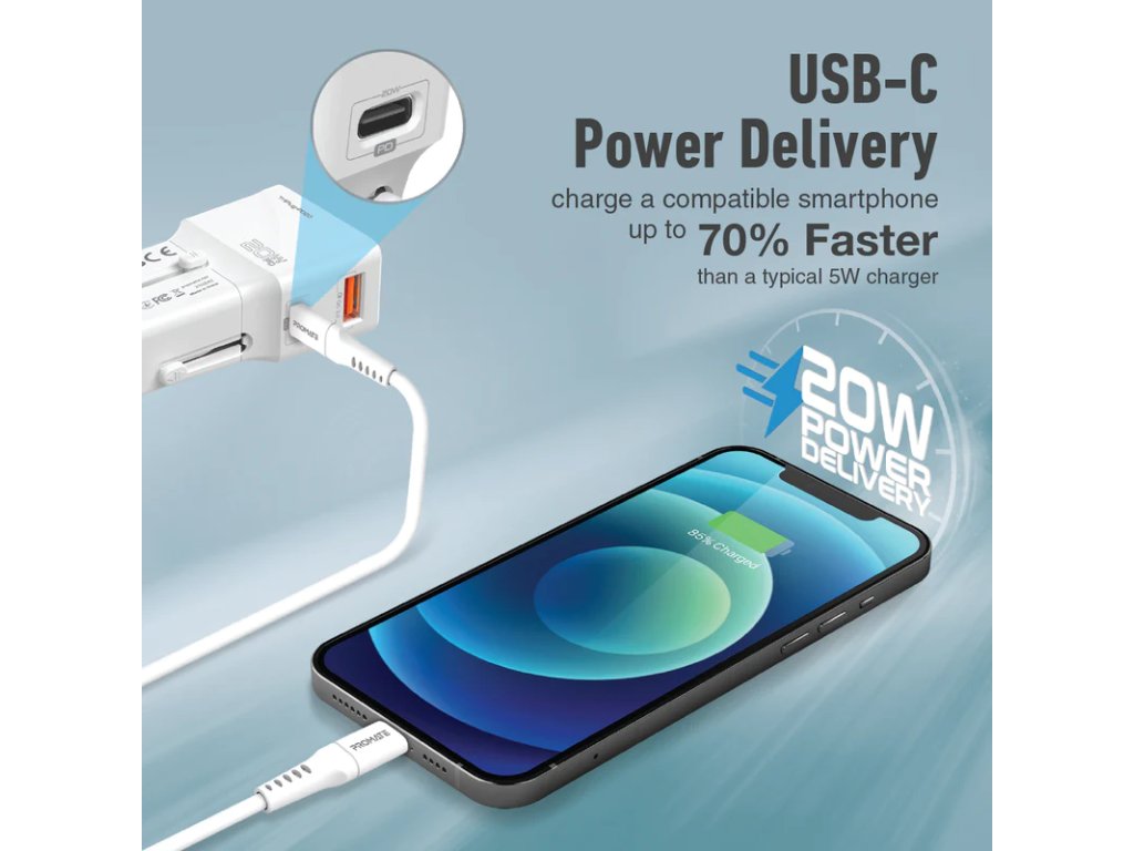 PROMATE TriPlug-PD20 je praktická univerzální cestovní nabíječka, se kterou snadno dobijete iPhone, iPad, MacBook, Apple Watch, Samsung Galaxy a další zařízení. Díky široké kompatibilitě se zásuvkami ve více než 150 zemích světa se stane nepostradatelným doplňkem na každou cestu.