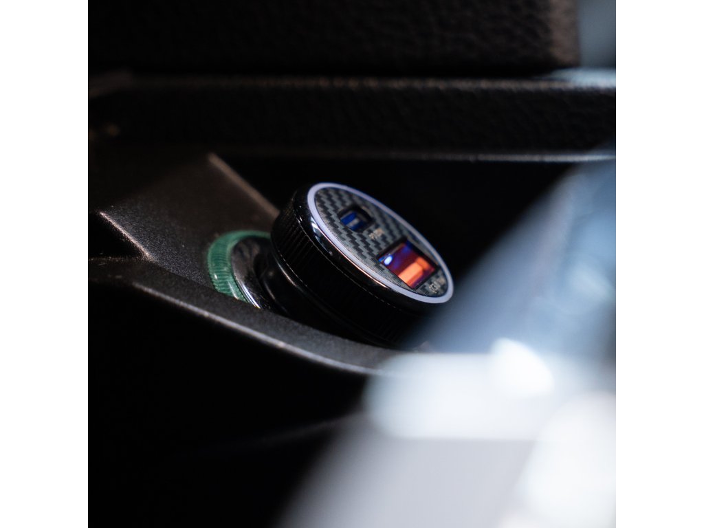 Díky malým rozměrům a světelnému kroužku je připojení jednoduché i ve tmě. Nabíječka nenarušuje vzhled interiéru vozu a snadno se přenáší.