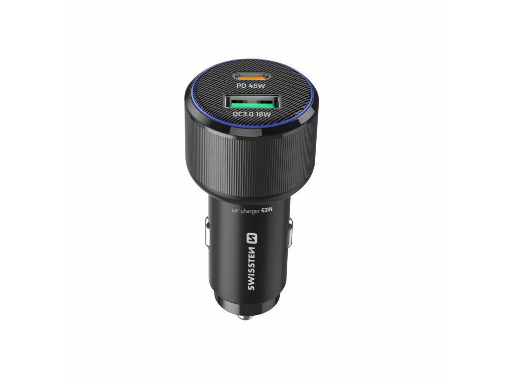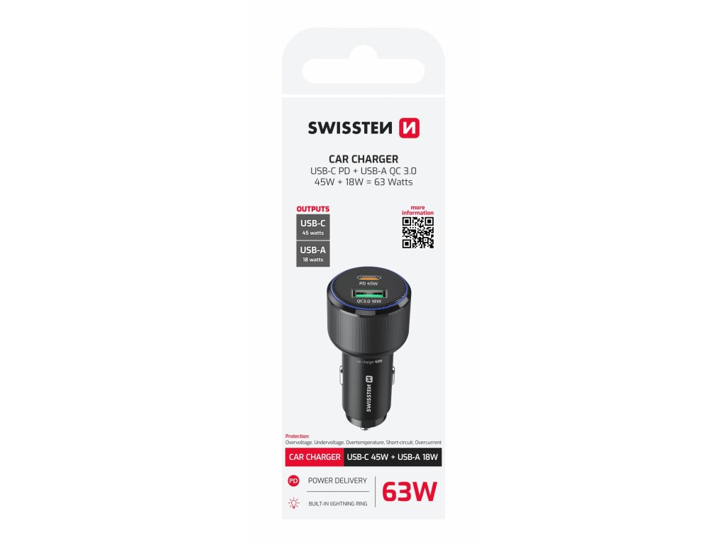 SWISSTEN CL adaptér USB-C PD + USB-A, 63 W, černý