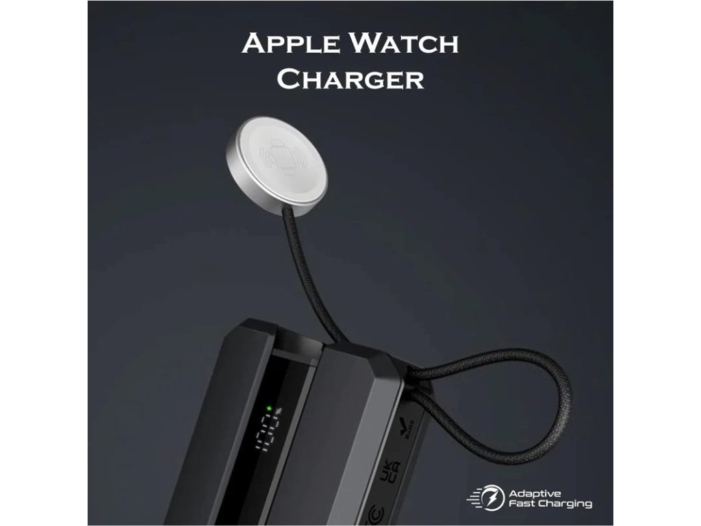 Powerbanka pro Apple Watch s USB-C a vestavěným USB-C kabelem, PD, 10 000 mAh, 30 W, černá