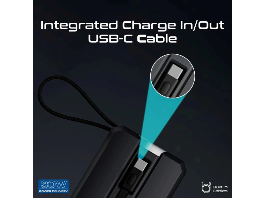 - Vestavěný USB-C kabel (zaklapávací, nepřekáží)
