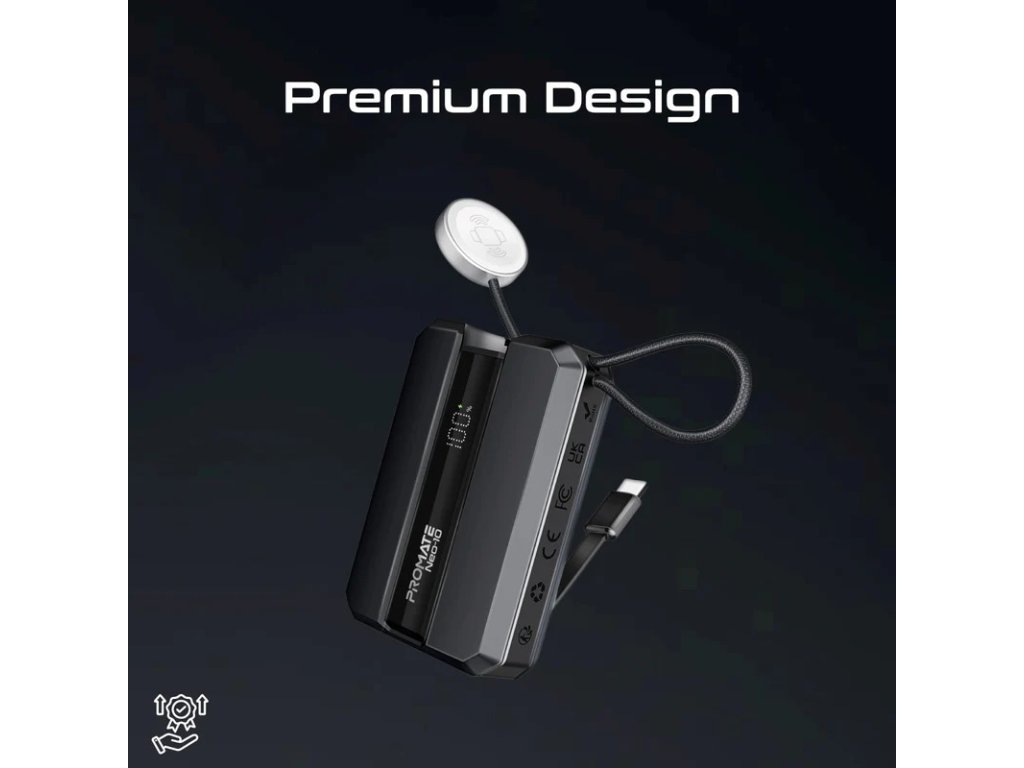 PROMATE Neo 10 powerbanka pro Apple Watch, s USB-C a vestavěným USB-C kabelem, PD, 10 000 mAh, 30 W, černá