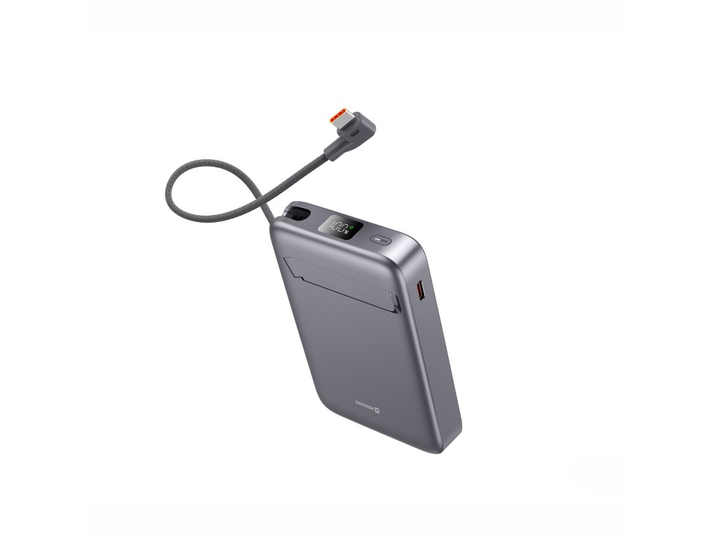 Součástí těla powerbanky je praktický 15cm USB-C kabel, který je ihned připraven k použití. Výklopný stojánek zase umožní pohodlné sledování obrazovky během nabíjení.