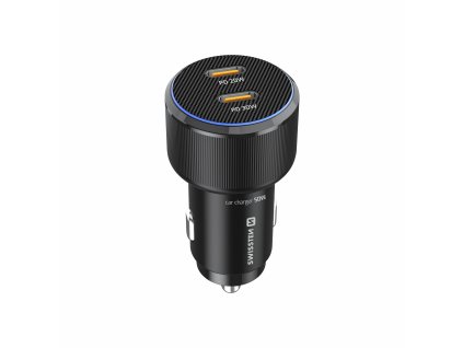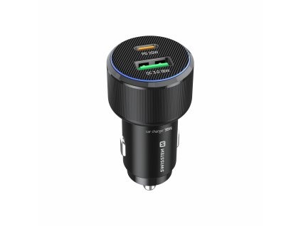 Autonabíječka Swissten 95W, Porty: 2× USB-C + USB-A, Max. výkon USB-C1: 65W, Max. výkon USB-C2: 30W, Max. výkon USB-A: 30W, Modré LED světlo, Váha: 30 g, Rozměry: Průměr 3,25 ×...